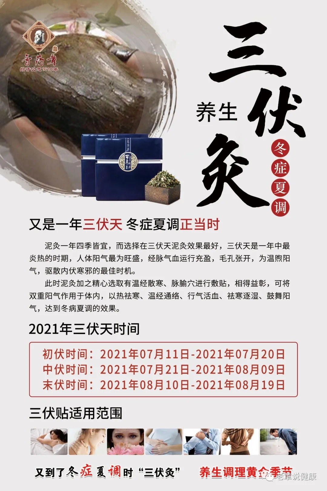 现在是夏季,冬病夏调最好的时候,夏天阳热之气,对“痹症”会有一定缓解作用,此时配合膏药贴敷,益气温阳,补肾壮骨,祛风除湿,更有效地调节人体脏腑功能,改善体质和免疫功能,疏通人体经络,可以“有病调病,无病强身”,防治结合,有助于彻底清除病邪,达到事半功倍的效果。